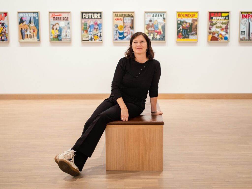 Michaela Konrad’s work encompasses a broad spectrum of media – preferably offset lithography, screen printing as well as animations and augmented reality. She paints in the tradition of flat painting, avoiding the artistic gesture. Instead, she strives to reduce the line, the brushstroke and the form to the essentials. And the idea is always the prerequisite and the drawing the basis of her creative work. In various projects, she experiments with new media and creates a combination of digital and traditional drawing.