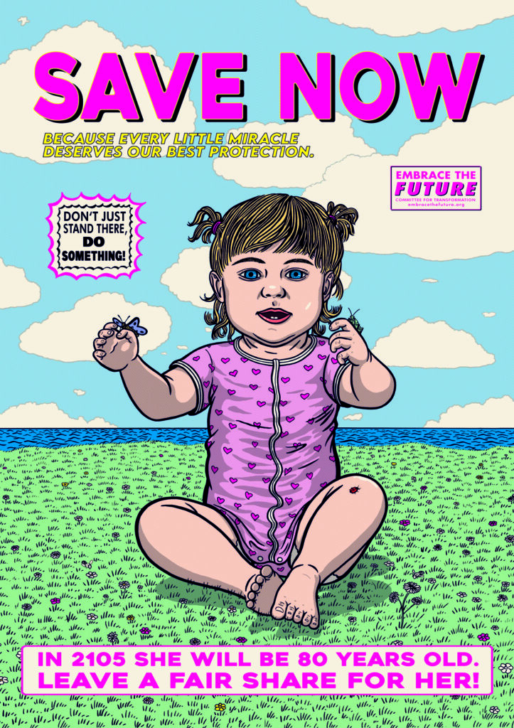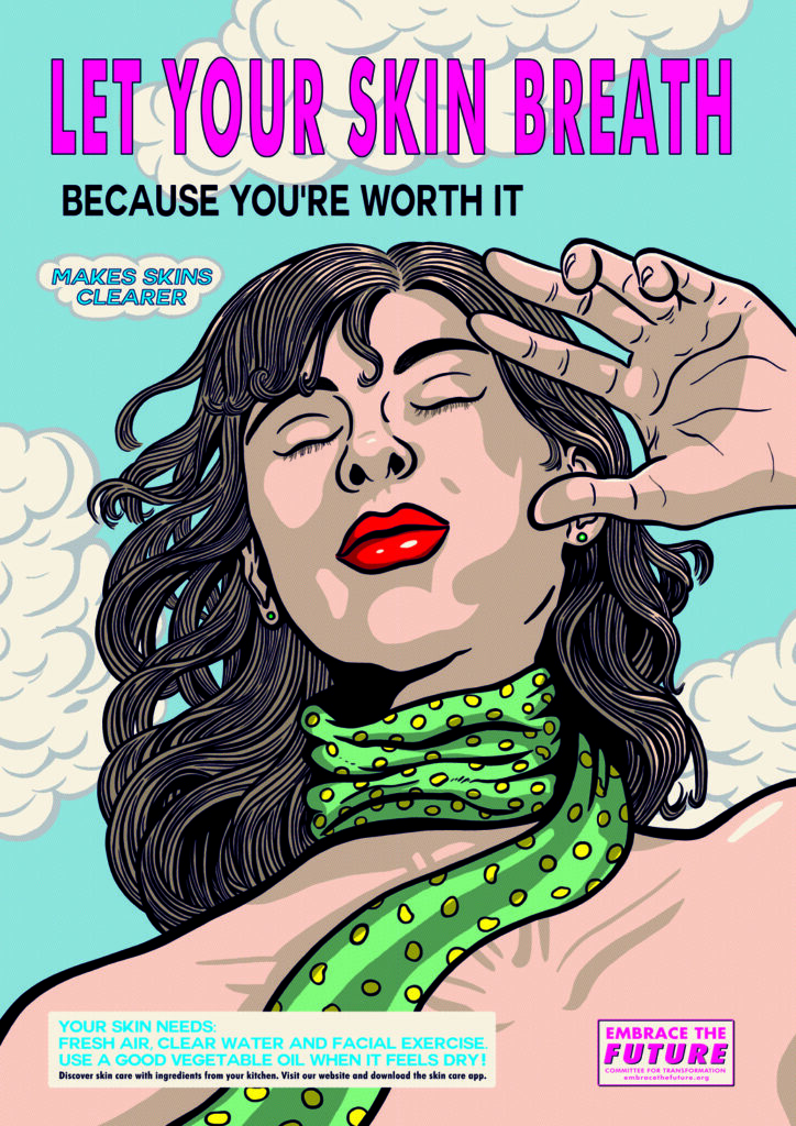 Michaela Konrad’s project Embrace the Future is a fictitious image campaign aimed at the consumer-oriented part of humanity that cultivates a western, resource-intensive lifestyle. In the style of classic commercial advertising, she illustrates twelve posters using screen printing. With the subject matter of the posters and their aesthetics, the poster series establishes artistic references to great role models: on the one hand to the WPA (Works Projects Administration) posters, which attempted to counteract the Great Depression during the New Deal in the USA from the end of the 1930s, and on the other hand to the American and British campaigns during the Second World War, which advertised renunciation with a view to a greater goal – resources for the war economy.