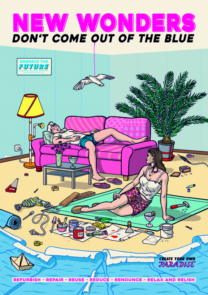 Embrace the Future propagates a system change that aims for an orderly shrunken (circular) economy. The scarce resources are used up by system-relevant institutions such as infrastructure, education, research and the healthcare sector. And above all, they are needed for the energy, transport and agricultural transition. There is no longer enough for superfluous (disposable) consumption.