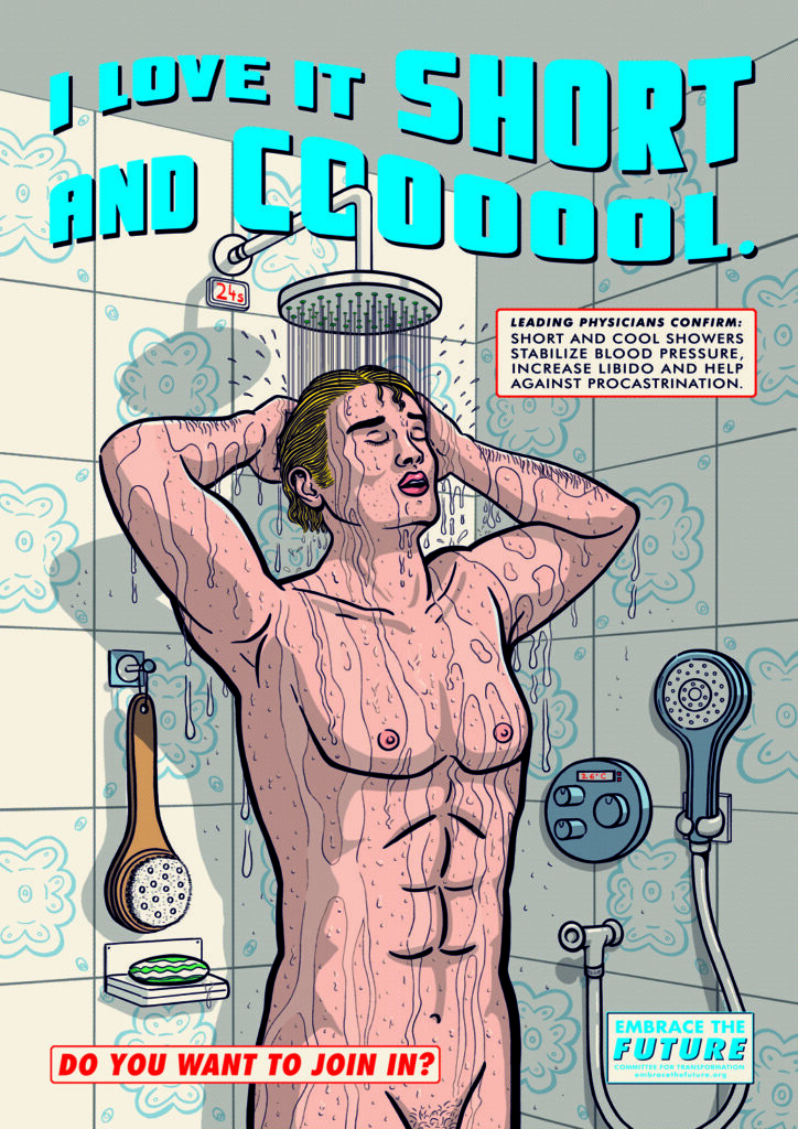 Michaela Konrad deliberately leaves open who the imaginary clients of this fictitious poster campaign are. Is it an authoritarian system, an eco-dictatorship that wants to give the prescribed rationing a positive image? Or is it a democratic (world) state that is trying to make the inevitable emergency regulations palatable to its citizens?